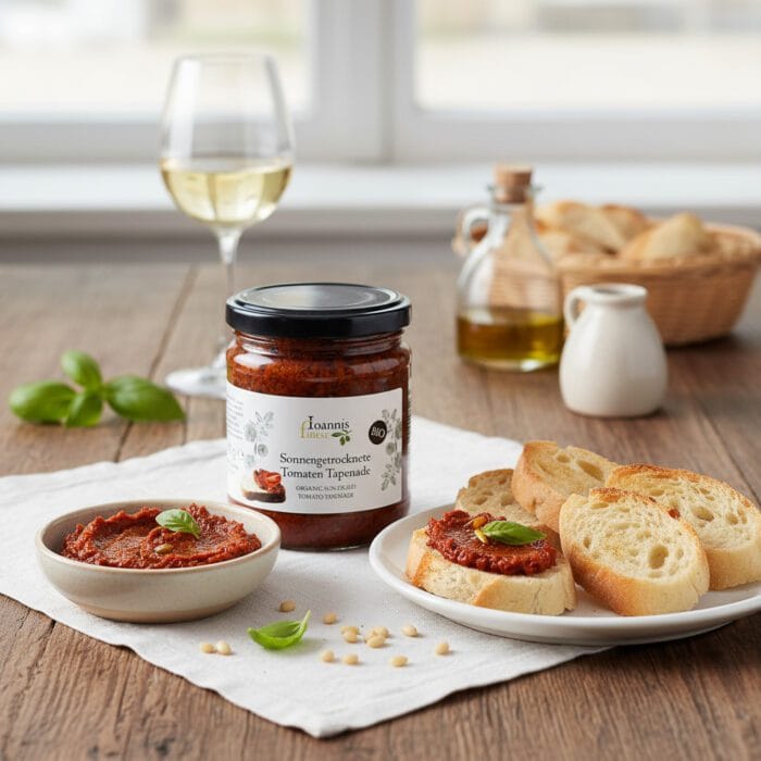 Das Bio Tomaten Pesto aus Griechenland von Ioannis Finest ist ein vielseitiger Begleiter in der mediterranen Küche.