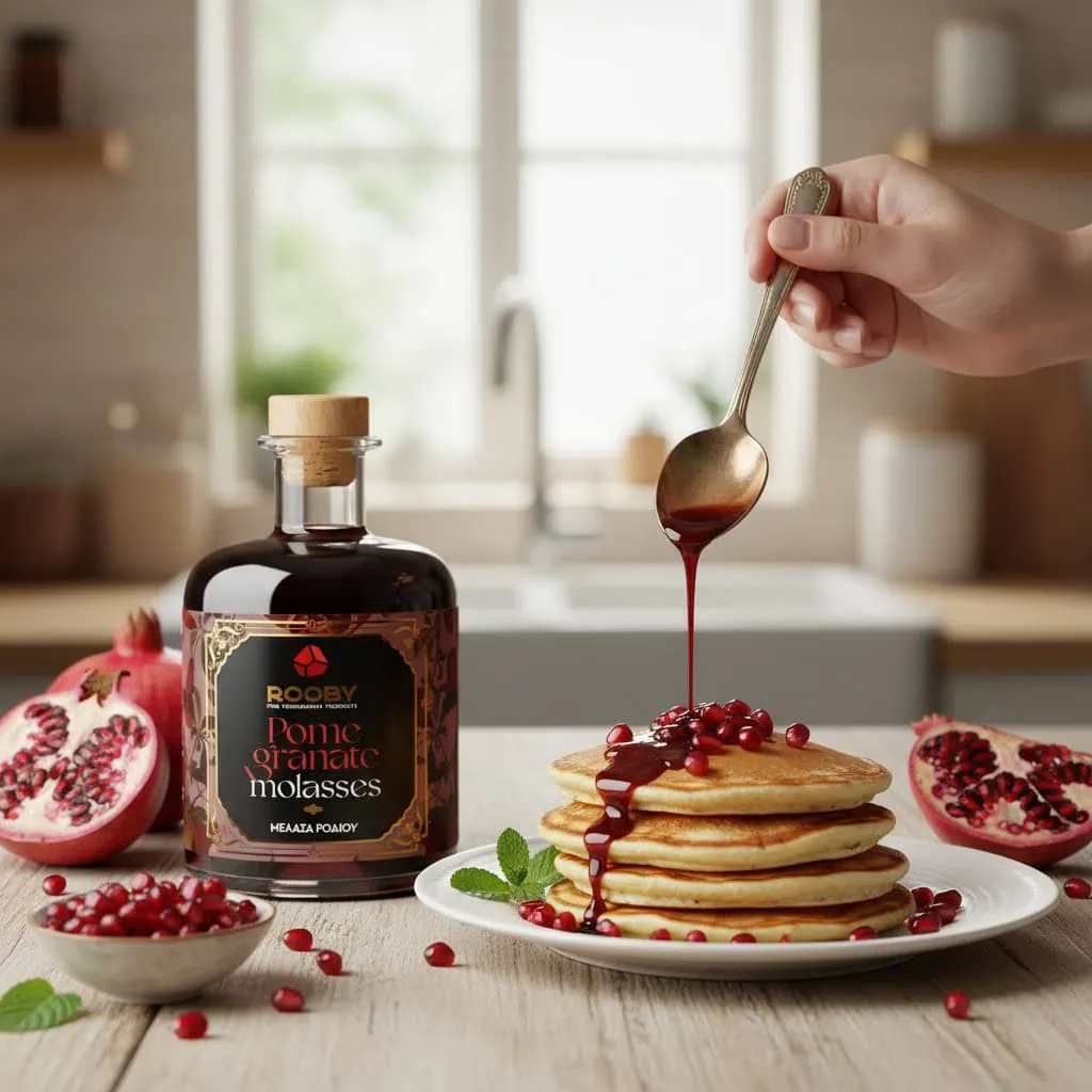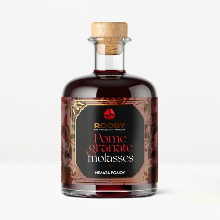 Die ROOBY Granatapfel-Melasse ist eine natürliche Delikatesse aus konzentriertem Granatapfelsaft. Zwei Jahre in Edelstahltanks gereift, entfaltet sie ihren unverwechselbaren süß-sauren Geschmack mit fruchtigem Nachklang. Frei von Zucker, Farb- und Konservierungsstoffen, eignet sie sich perfekt zum Verfeinern von Salaten, Marinaden, Fleisch, Käse und Desserts. Reich an Mineralstoffen, Vitaminen und Antioxidantien ist sie ein echtes Superfood aus Griechenland – ein hochwertiges Produkt für Genießer.
