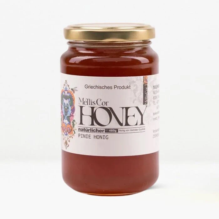 Mit dem griechischen Kieferhonig von Mellis Cor genießt du reinen, naturbelassenen Honiggenuss aus Griechenland.