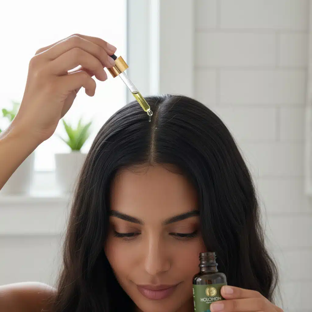 Regelmäßige Anwendung sorgt für sichtbar kräftigeres, gesünderes Haar – ganz natürlich mit Lorbeer-Öl von Holomon.